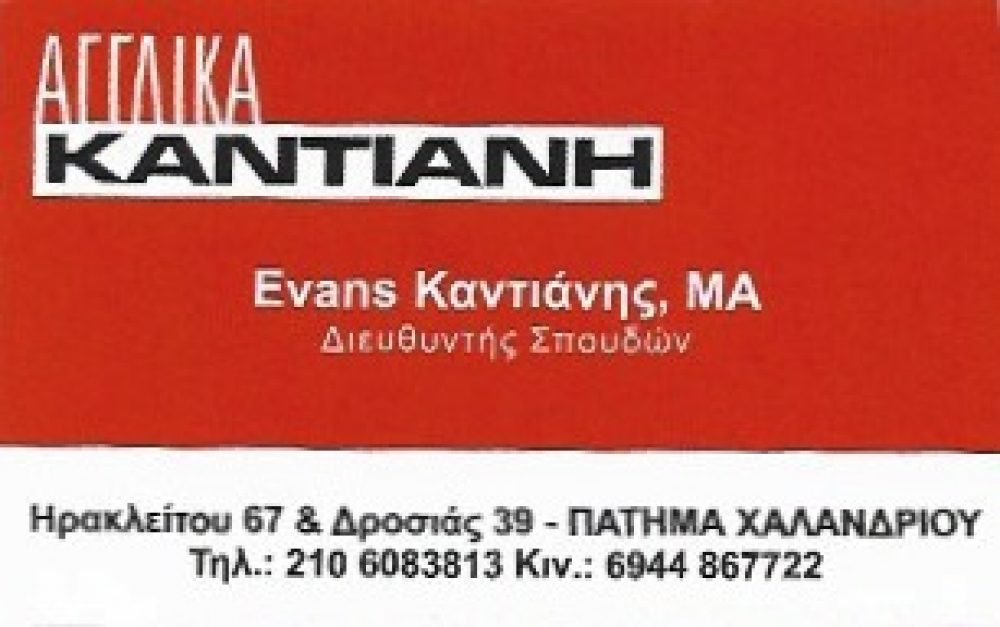 ΑΓΓΛΙΚΑ ΚΑΝΤΙΑΝΗ – ΚΑΝΤΙΑΝΗΣ ΕΒΑΝΣ