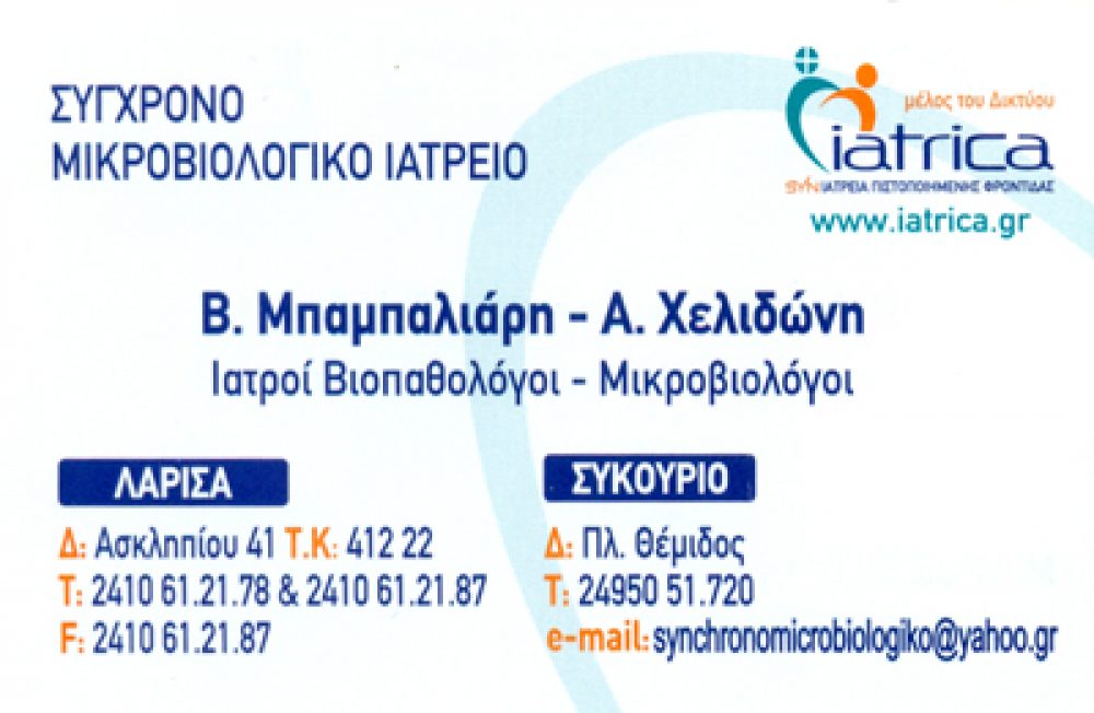 ΜΙΚΡΟΒΙΟΛΟΓΟΣ ΛΑΡΙΣΑ, ΒΙΟΠΑΘΟΛΟΓΟΣ ΛΑΡΙΣΑ, ΜΙΚΡΟΒΙΟΛΟΓΙΚΟ ΙΑΤΡΕΙΟ ΛΑΡΙΣΑ, ΜΙΚΡΟΒΙΟΛΟΓΙΚΟ ΙΑΤΡΕΙΟ ΣΥΜΒΕΒΛΗΜΕΝΟ ΜΕ ΕΟΠΥΥ ΛΑΡΙΣΑ