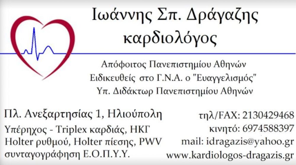 ΚΑΡΔΙΟΛΟΓΟΣ ΗΛΙΟΥΠΟΛΗ,ΚΑΡΔΙΟΛΟΓΙΚΟ ΙΑΤΡΕΙΟ ΗΛΙΟΥΠΟΛΗ,ΔΙΕΝΕΡΓΕΙΑ ΠΛΗΡΟΥΣ ΚΛΙΝΙΚΗΣ ΕΞΕΤΑΣΗΣ ΚΑΡΔΙΑΓΓΕΙΑΚΟΥ-ΑΝΑΠΝΕΥΣΤΙΚΟΥ ΣΥΣΤΗΜΑΤΟΣ ΗΛΙΟΥΠΟΛΗ,TRIPLEX ΚΑΡΔΙΑΣ ΚΑΙ ΑΟΡΤΗΣ ΗΛΙΟΥΠΟΛΗ,HOLTER ΡΥΘΜΟΥ ΗΛΙΟΥΠΟΛΗ,HOLTER ΠΙΕΣΗΣ ΗΛΙΟΥΠΟΛΗ,ΑΝΑΛΥΣΗ ΣΦΥΓΜΙΚΟΥ ΚΥΜΑΤΟΣ ΗΛΙΟΥΠΟΛΗ,ΟΞΥΜΕΤΡΙΑ ΗΛΙΟΥΠΟΛΗ