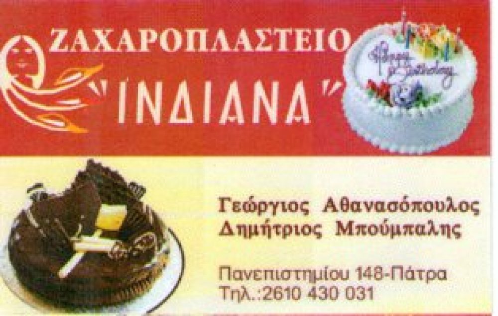 ΖΑΧΑΡΟΠΛΑΣΤΕΙΟ ΠΑΤΡΑ, ΤΟΥΡΤΕΣ ΓΑΜΟΥ-ΒΑΠΤΙΣΗΣ ΠΑΤΡΑ, ΙΝΔΙΑΝΑ ΖΑΧΑΡΟΠΛΑΣΤΕΙΟ ΠΑΤΡΑ, ΓΛΥΚΑ ΤΑΨΙΟΥ – ΚΕΡΑΣΜΑΤΑ – ΤΥΛΙΧΤΑ ΓΛΥΚΑ – ΤΣΟΥΡΕΚΙΑ – ΜΕΛΟΜΑΚΑΡΟΝΑ – ΚΟΥΡΑΜΠΙΕΔΕΣ – ΣΙΡΟΠΙΑΣΤΑ ΓΛΥΚΑ ΠΑΤΡΑ