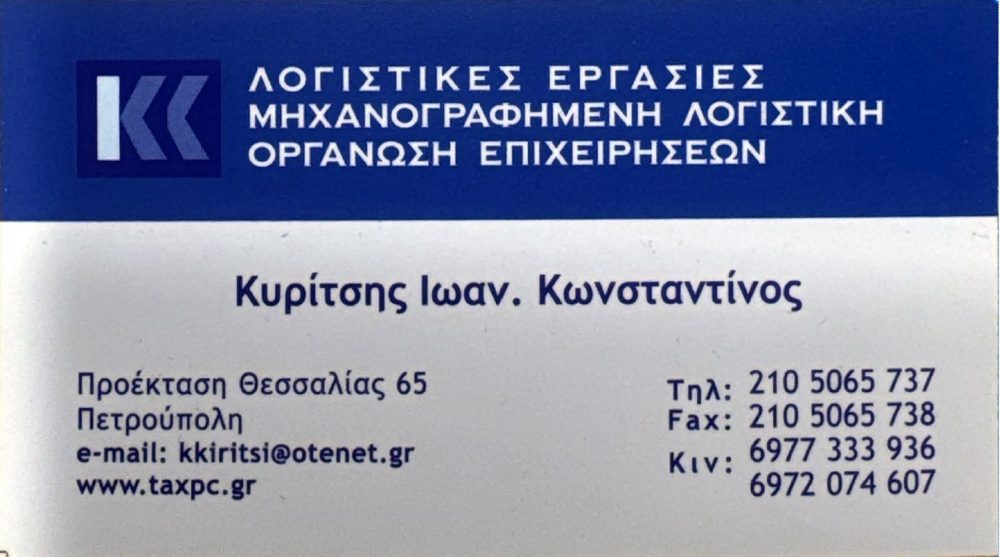 ΛΟΓΙΣΤΕΣ ΠΕΤΡΟΥΠΟΛΗ, ΛΟΓΙΣΤΙΚΟ ΓΡΑΦΕΙΟ ΠΕΤΡΟΥΠΟΛΗ, ΦΟΡΟΤΕΧΝΙΚΟ ΓΡΑΦΕΙΟ ΠΕΤΡΟΥΠΟΛΗ,ΦΟΡΟΤΕΧΝΙΚΕΣ ΥΠΗΡΕΣΙΕΣ ΠΕΤΡΟΥΠΟΛΗ, ΦΟΡΟΤΕΧΝΙΚΕΣ ΕΦΑΡΜΟΓΕΣ ΠΕΤΡΟΥΠΟΛΗ, ΣΥΜΒΟΥΛΟΙ ΕΠΙΧΕΙΡΗΣΕΩΝ ΠΕΤΡΟΥΠΟΛΗ, ΤΗΡΗΣΗ ΟΛΩΝ ΤΩΝ ΚΑΤΗΓΟΡΙΩΝ ΠΕΤΡΟΥΠΟΛΗ, ΜΗΧΑΝΟΡΓΑΝΩΣΗ ΕΤΑΙΡΕΙΩΝ ΠΕΤΡΟΥΠΟΛΗ, ΕΡΓΑΤΙΚΑ-ΑΣΦΑΛΙΣΤΙΚΑ ΠΕΤΡΟΥΠΟΛΗ, ΥΠΟΒΟΛΕΣ ΔΗΛΩΣΕΩΝ ΠΕΤΡΟΥΠΟΛΗ