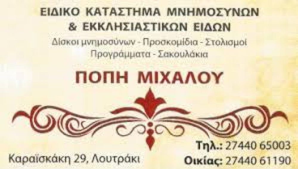 ΕΚΚΛΗΣΙΑΣΤΙΚΑ ΕΙΔΗ ΛΟΥΤΡΑΚΙ