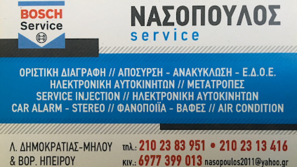 Η επιχείρηση μας διαθέτει: κέντρο ανακύκλωσης αυτοκινήτων, μοτοσικλετών και φορτηγών μηχανημάτων, απόσυρση αυτοκινήτων, ανακύκλωση αυτοκινήτων, πανελλαδική εξυπηρέτηση, service αυτοκινήτων, ανταλλακτικά αυτοκινήτων, φανοποιείο, ηλεκτρονική αυτοκινήτων.