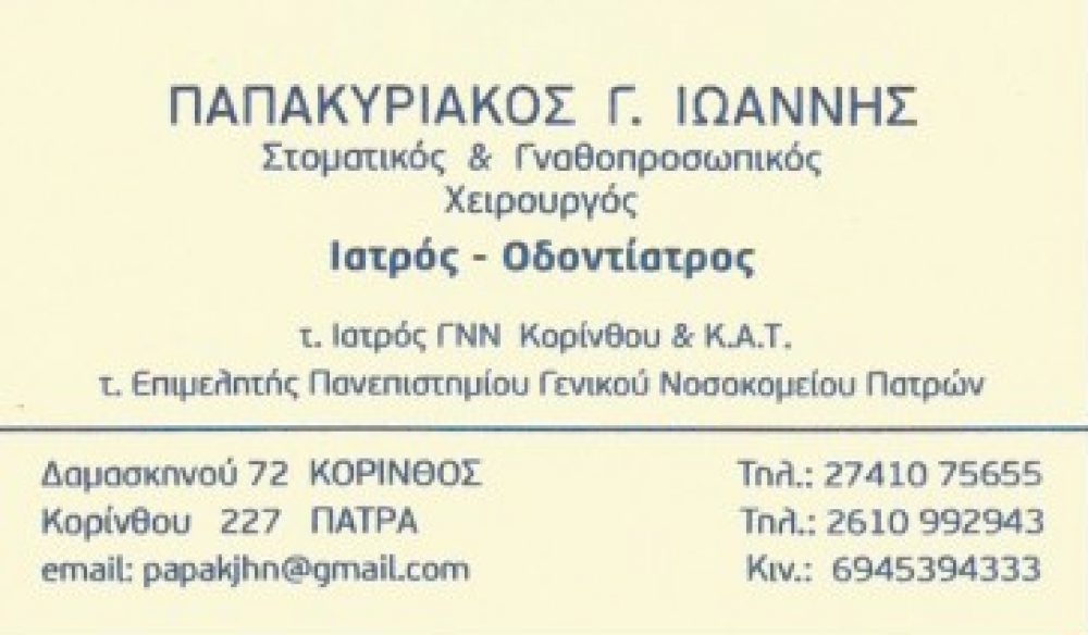 Στοματικός & Γναθοπροσωπικός Χειρουργός Κόρινθος