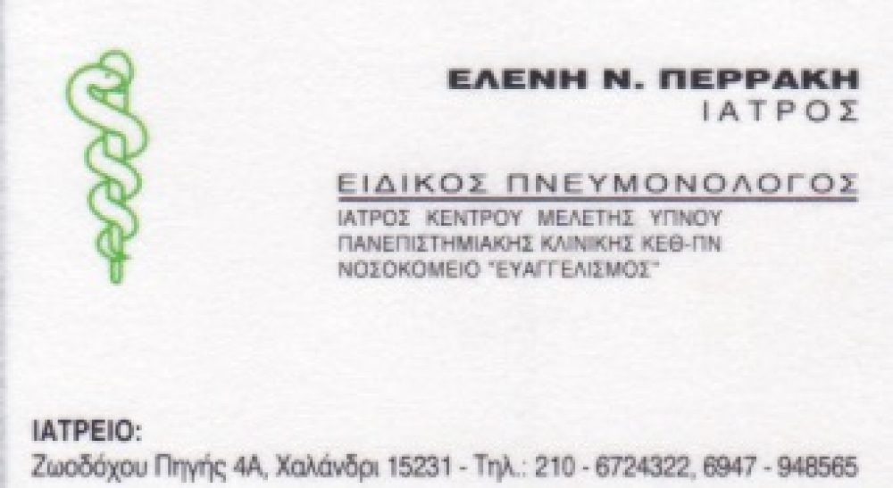 ΠΕΡΡΑΚΗ ΕΛΕΝΗ – ΕΙΔΙΚΟΣ ΠΝΕΥΜΟΝΟΛΟΓΟΣ – ΥΠΝΙΑΤΡΟΣ